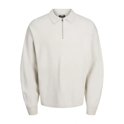 JACK & JONES Men's Jcoryker Knit LS Polo Jumper, Moonbeam, M