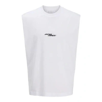 JACK & JONES Men's Jcosago Graphic Back Sleeveless Tee, Bright White, S