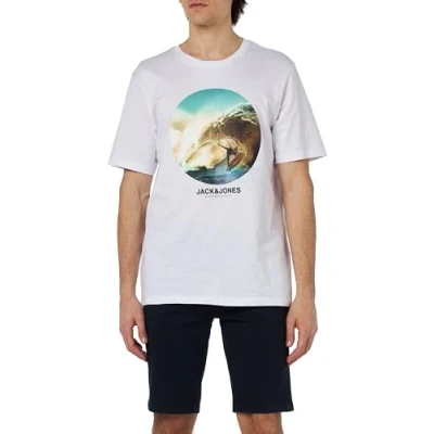 JACK & JONES Men's Jjcellox Tee SS Crew Neck T Shirt, White, S