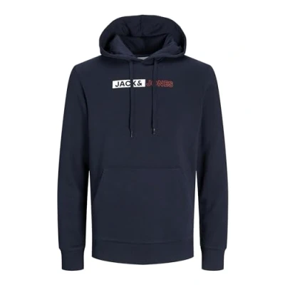 JACK & JONES Men's Jjecorp Logo Sweat Hood Play Noos Sweatshirt, Navy Blazer/Print:Play 5, XL