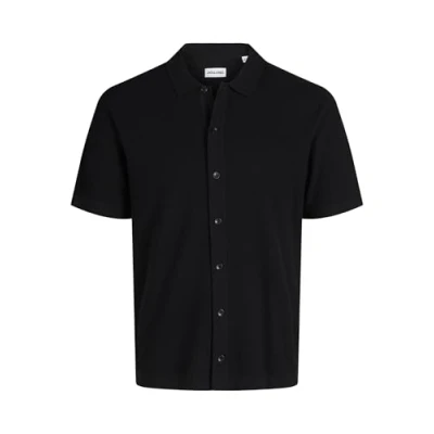 JACK & JONES Men's Jjeemil Knit Structure Shirt Ss Sn Short Sleeved, Black, L