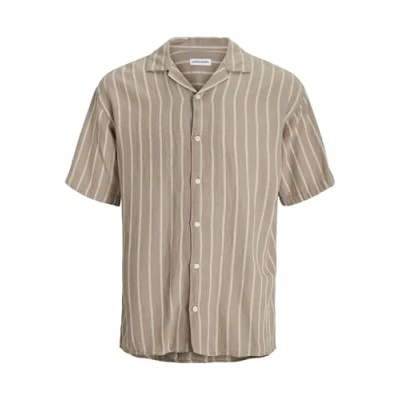 JACK & JONES Men's Jjeenzo Stripe Resort Shirt Ss Sn Short Sleeved, Crockery, L