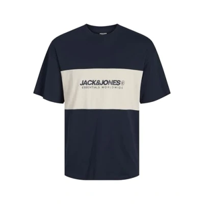 JACK & JONES Men's Jjelegacy Blocking Tee Ss O Neck Noos T Shirt, Blazer Navy, M