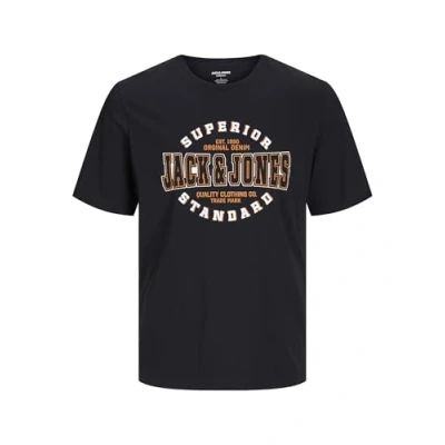 JACK & JONES Mens Jjelogo Tee O Neck 2 Col Aw24 Sn T Shirt, Black White Orange, S UK