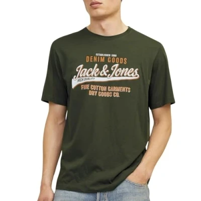 JACK & JONES Mens Jjelogo Tee O Neck 2 Col Aw24 Sn T Shirt, Green Orange White, XXL UK