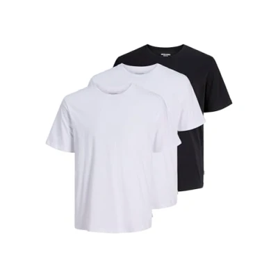 JACK & JONES Mens Jjeorganic Basic Tee O Neck 3pk Mp T Shirt, Black White, L UK