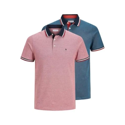 JACK & JONES Mens Jjepaulos 2pk Mp Polo Shirt, Rio Red/Denim Blue, M UK