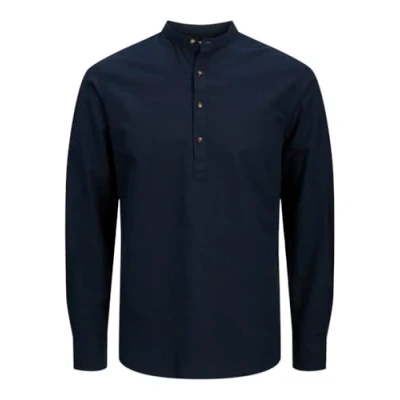 JACK & JONES Men's Jjesummer Half Placket Shirt LS Sn Long Sleeve, Blazer Navy, M