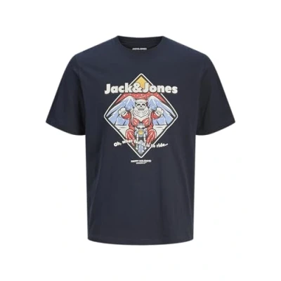 JACK & JONES Men's Jjxmas Christmas Skull Tee SS Crew Neck T Shirt, Sky Captain, S