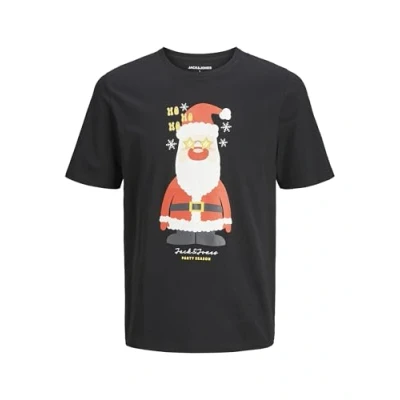 JACK & JONES Men's Jjxmas Jolly Tee SS Crew Neck T Shirt, Black, S