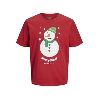 JACK & JONES Men's Jjxmas Jolly Tee SS Crew Neck T Shirt, Scarlet Sage, M