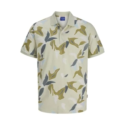 JACK & JONES Men's Joralmeria AOP Polo SS, Celadon Tint, XL