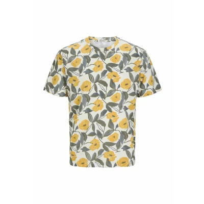 JACK & JONES Men's Joralmeria AOP Tee SS Crew Neck, Buttercream, S