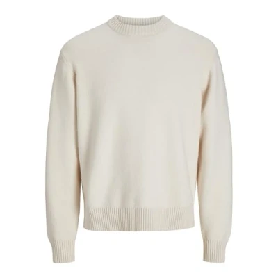 JACK & JONES Men's Joravondale Jacquard Knit Crew Neck Jumper, Sea Salt, S