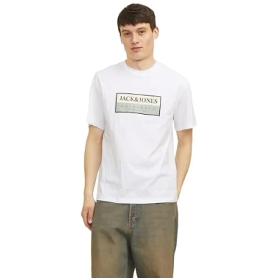 JACK & JONES Men's Jorfrederiksberg Box Tee Ss C.n Sn T Shirt, Bright White/Detail: AW24, L