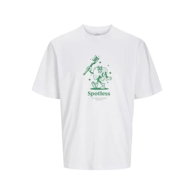 JACK & JONES Men's Jorgame Tee SS Crew Neck Tg T Shirt, Bright White/Print: Green Print, L
