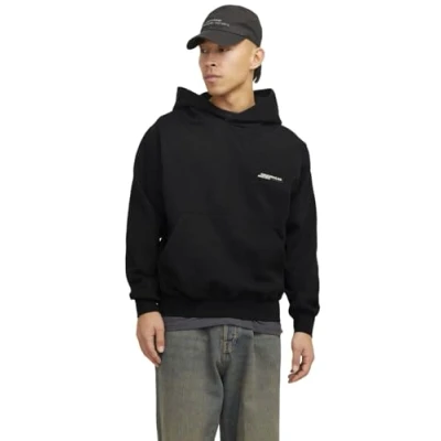 JACK & JONES Men's Jorislington Back Sweat Hood Sn, Black, M