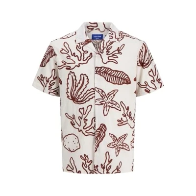 JACK & JONES Men's Jorluke Crinkle AOP Shirt Ss, Cloud Dancer, S