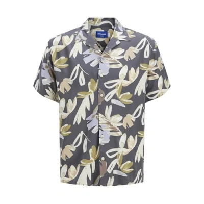 JACK & JONES Men's Jorluke Varenna AOP Shirt Ss, Iron Gate, L