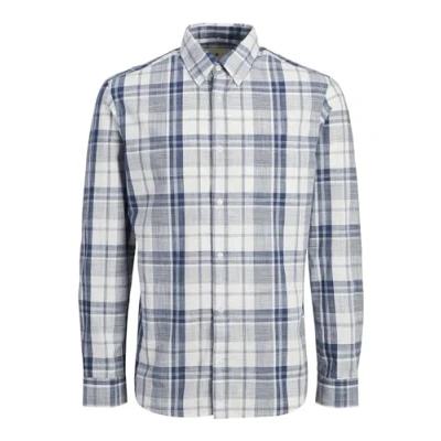 JACK & JONES Men's Jprblubrook Slub Check Shirt L/S Long Sleeve, Cloud Dancer/Fit: Comfort fit, S
