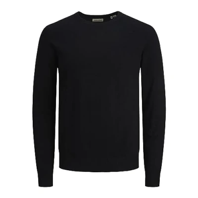 JACK & JONES Men's Lightweight Long Sleeve Knit Pullover Crew Neck Essential Sweater Top Jumper JJEMIL., Colours:Black, Size Sweater:XL