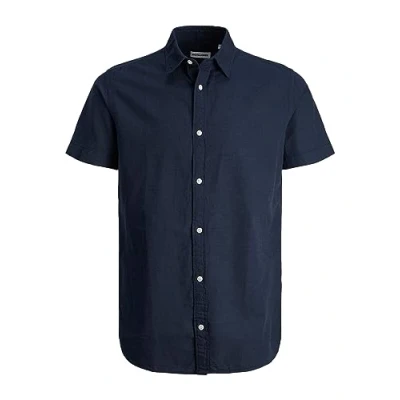 JACK & JONES Mens Linen Blend Short Sleeve Shirt Navy Blazer M