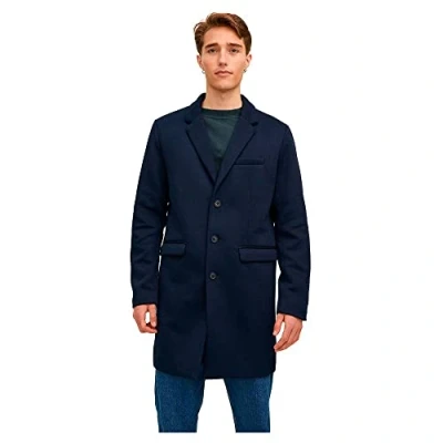 JACK & JONES Mens Long Coat Regular Fit Knitted Sleeve Outdoor Wear, Blazer Navy Colour, UK Size L