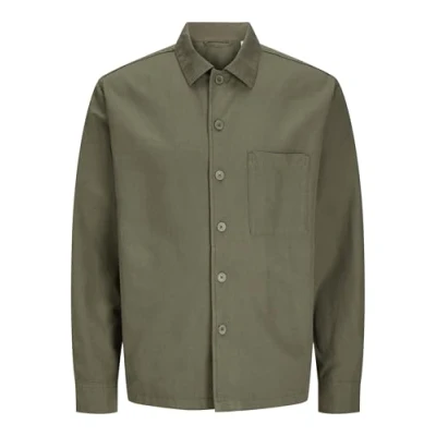 JACK & JONES Men's Male Wide Fit Overshirt Long Sleeve Shirt, Olive Night, L