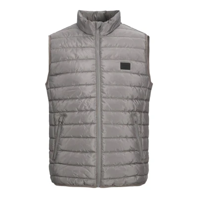 JACK & JONES Mens Puffer Gilet Warm, Breathable, High Collar, Water Resistant, Zipper Pocket Outerwear Jacket for Men, Charcoal, Size Medium