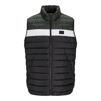 Jack & Jones Mens Puffer Gilet with Stand Up Collar Lightweight Green Size Small