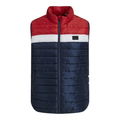 Jack & Jones Mens Puffer Gilet with Stand Up Collar Lightweight Navy/Red Size X Large
