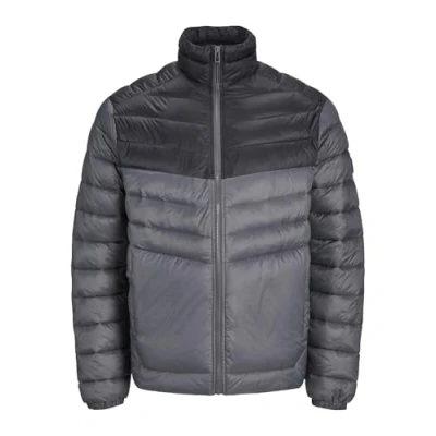 JACK & JONES Mens Quilted Jacket Windproof 100% Nylon Long Sleeve Outdoor Puffer for Men, Asphalt Colour, Size L