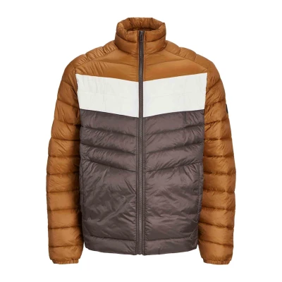 JACK & JONES Mens Quilted Jacket Windproof 100% Nylon Long Sleeve Outdoor Puffer for Men, Mulch Colour, Size M