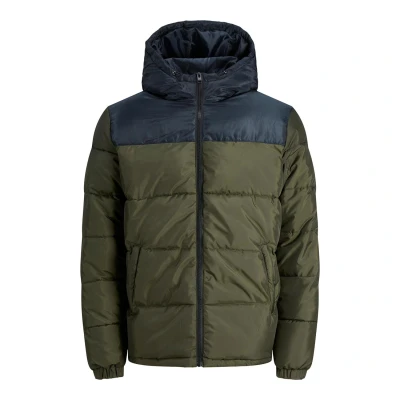 Jack & Jones Mens Regular Fit Long Sleeves Puffer Hood Forest Night Olive Size Large