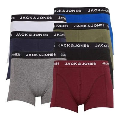 Enjoy these Iconic Jack & Jones Men's Jactone In Tone Trunks 7Pack, they are essential for any man's underwear collection as they provide luxury comfort and style. Long-lasting stretch in the waistband. Anatomically correct H-shape for high comfort. Features: 7-pack basic trunks Lots of stretches Elasticated waistband Tight and comfortable Washing Instruction: Machine wash at max 40°C under gentle wash program Do not bleach Tumble dry on medium heat settings Hang dry Dry clean (no trichloroethylene) High temp. iron. Highest temp. 200°C Package Includes: Men's 7 Pack Jack & Jones Boxer Shorts, Select your size