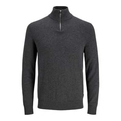 JACK & JONES Men's Thin Knit Pullover Stand up Collar Jumper with Zip Long Sleeve Essential JJEEMIL, Colours:Black, Size Sweater:M