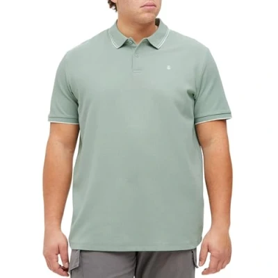 JACK&JONES Plus Men's Jack & Jones Male Size Logo Poloshirt Polo Shirt, Light Green White, 4XL
