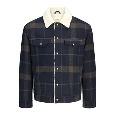 AmazonJack&Jones Premium Jacket Adult Plaid Fly-Away Collar Long Sleeve
