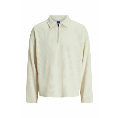 Jack & Jones RICK Plisse Split Jumper, Men's, Size: XXL, Antique white