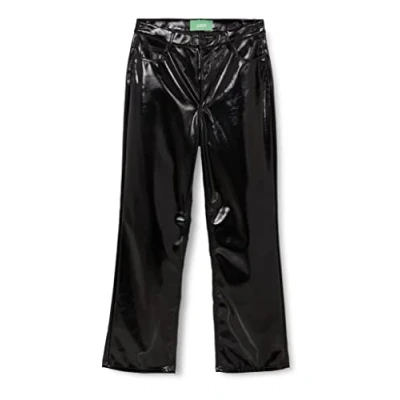 Jack & Jones Women's Jxkenya Hw Straight Faux Leat Pants Noos Trouser, Black/Detail: Shiny Long, L