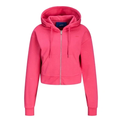 JACK & JONES Womens Sweat Hoodie Drawtrings Full Zip Regular Fit Dropped Shoulders, Raspberry Sorbet Colour, UK Size L