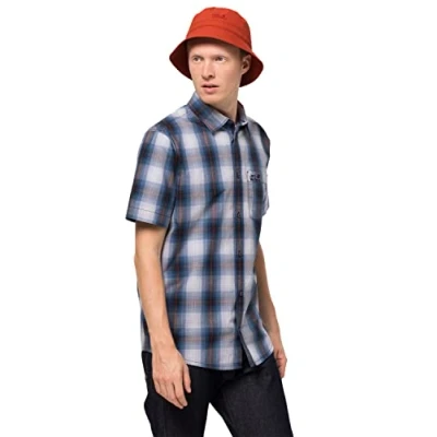 Jack Wolfskin Men Hot Chili Shirt Night Blue Checks, Large