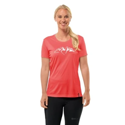 Jack Wolfskin Women's Peak Graphic T W Shirt, Vibrant red, L