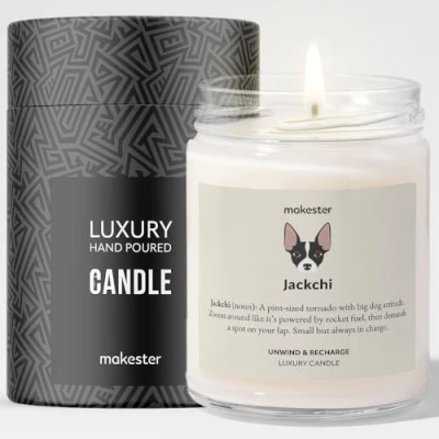 Jackchi Candle Over 100+ Breeds Luxury Soy Wax Vanilla, Jasmine, Sugared Almond Gift Makester