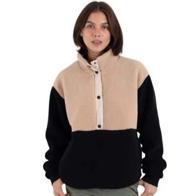 Fleece with kangaroo pockets. Quarter-zip closure with buttons. Slim fit with ergonomic design.