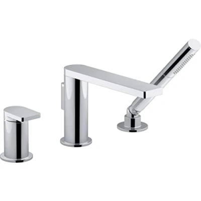Jacob Delafon 3 Hole Bath and Shower Mixer Tap on Throat Composed Collection Titanium Finish