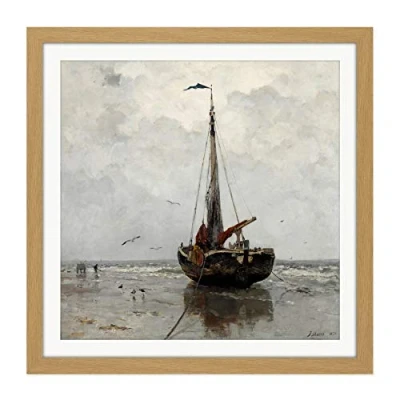 Jacob Maris Fishing Boat Square Wooden Framed Wall Art Print Picture 16X16 Inch
