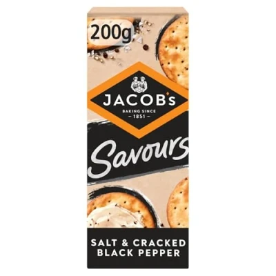 JACOB'S Savours Bakes Salt & Pepper Crackers, 200 g (Pack of 8)