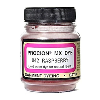 AmazonColorfast permanent and washable concentrated dye powder No heat needed to fix dye - great for backyard tie dyeing Also great for other dye methods and direct dye applications 2/3 ounce jar (by weight) of Raspberry Procion MX dye Made in USA, Manufacturer: Jacquard Products