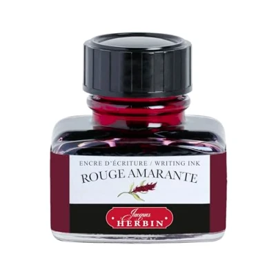 Jacques Herbin 13026T One 30 ml bottle of ink for fountain pens and rollerball pens, Rouge Amarante/ Red Amaranth colour Made in France Calligraphy